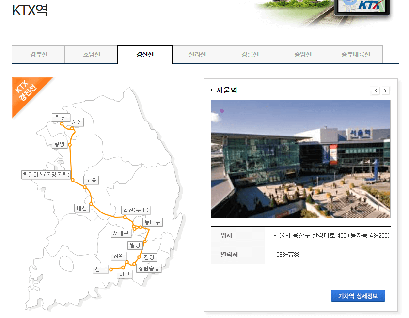주요 노선: 경부선, 동해선, 중앙선, 경전선 등이 있으며, KTX가 부산과 대구, 울산 등 주요 도시를 연결합니다.