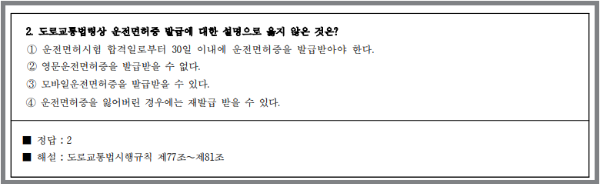2종 보통 운전면허 필기시험의 특징